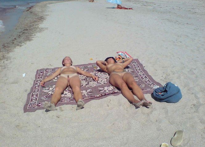 Милые попки загорают на нудиском пляже